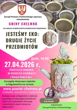 Zapraszamy na bezpłatne warsztaty "Jesteśmy eko: Grugie życie przedmiotów" 27.04.2026...