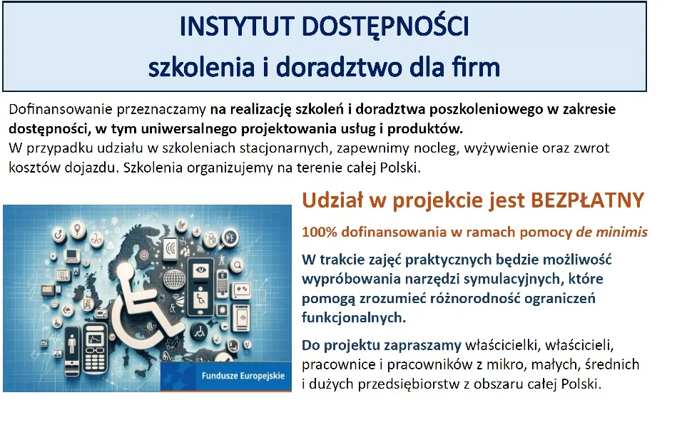 Zaproszenie na spotkanie informacyjno- promocyjne projektu " Instytut Dostępności- szkolenia...