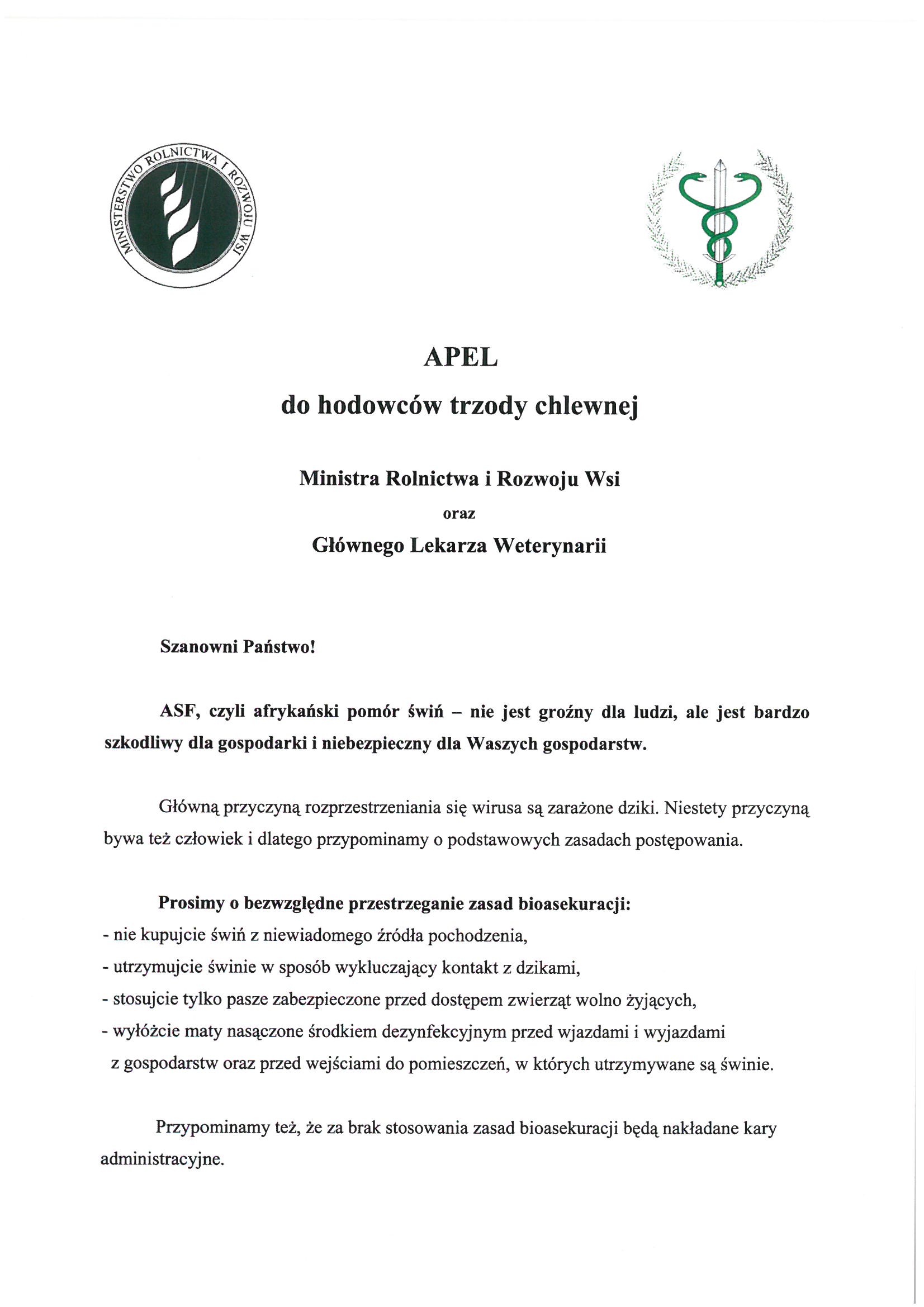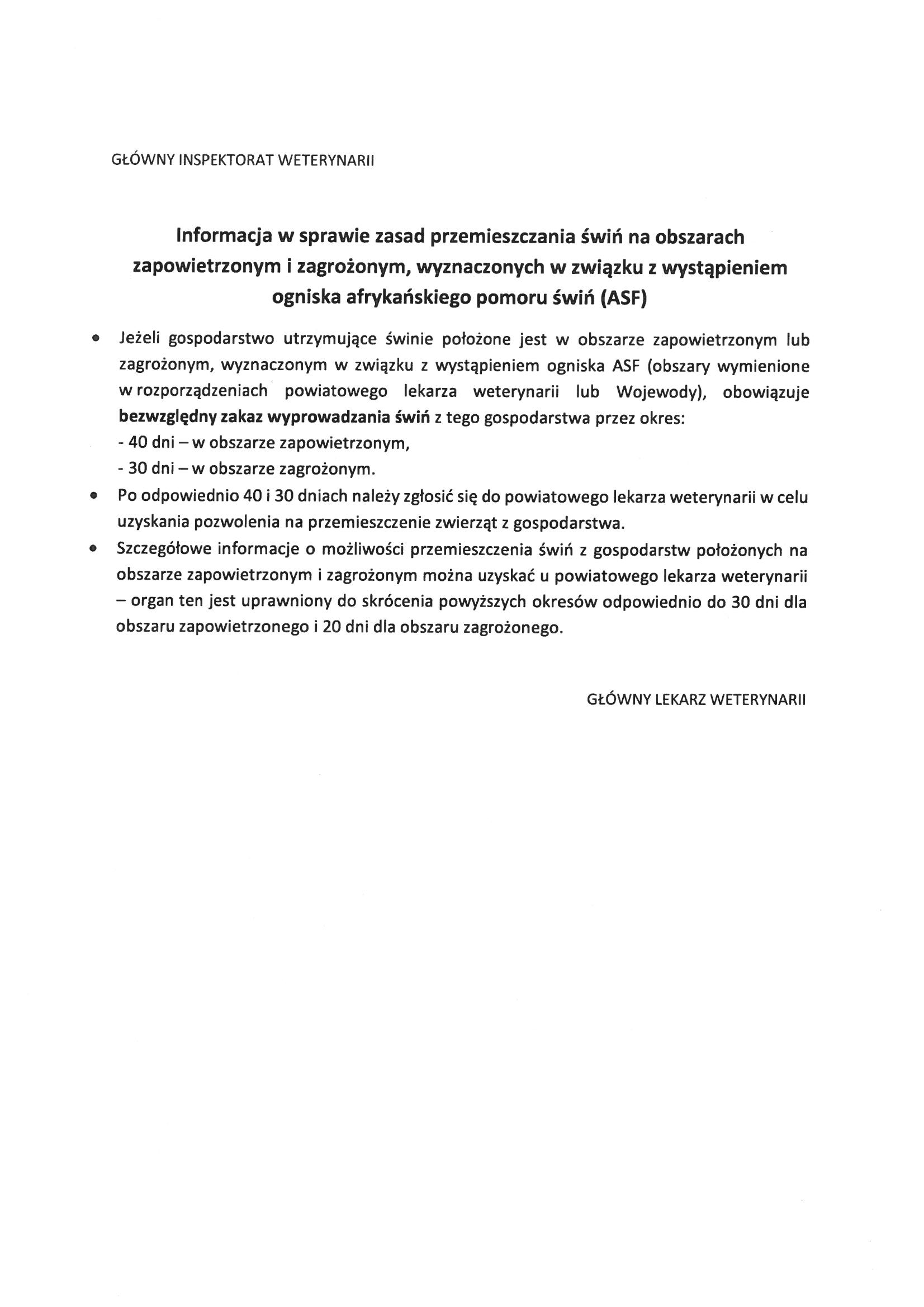 Informacja na temat spotkania Powiatowego Lekarza Weterynarii w Chełmnie z rolnikami w sprawie Afrykańskiego pomoru świń