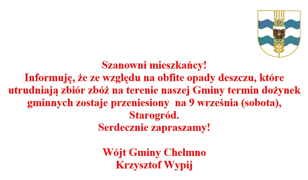 Informacja w sprawie przełożenia na inny termin Gminnych Dożynek