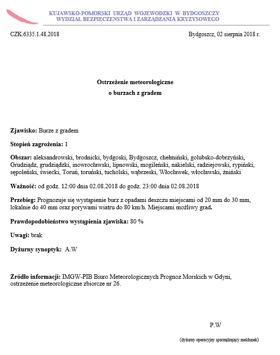 Ostrzeżenie meteorologiczne Burze z gradem