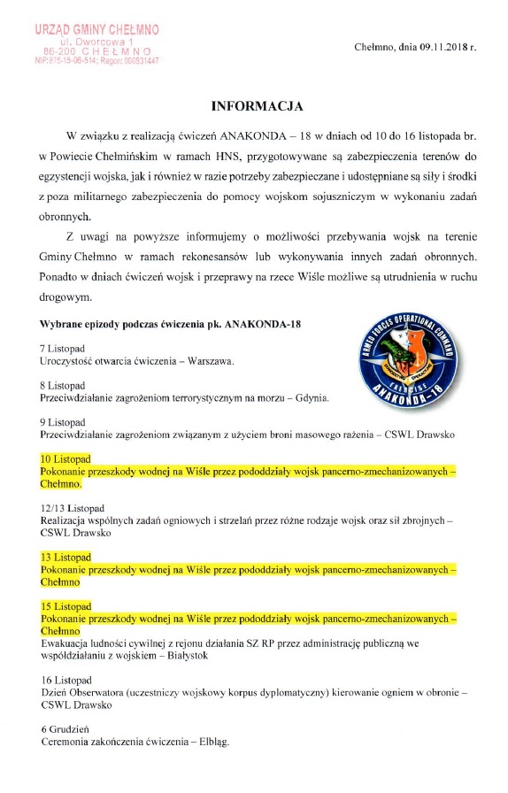 Informacja Anakonda 2018