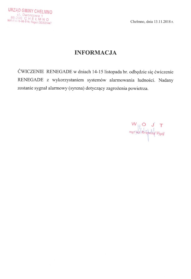 Ćwiczenie RENEGADE w dniach 14-15 listopada