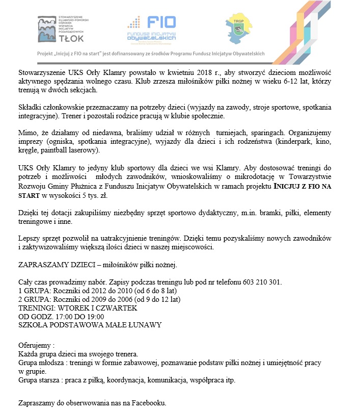 UKS Orły Klamry z mikrodotacją FIO