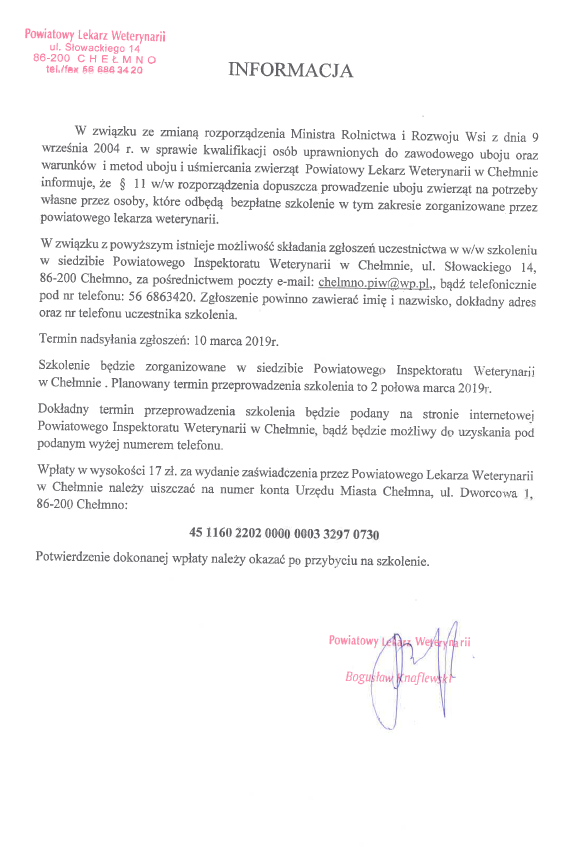 Szkolenie z zakresu uboju na użytek własny
