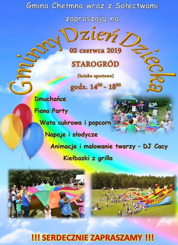 Gminny Dzień Dziecka 1 czerwca w Podwiesku i 2 czerwca w Starogrodzie. Zapraszamy!!!