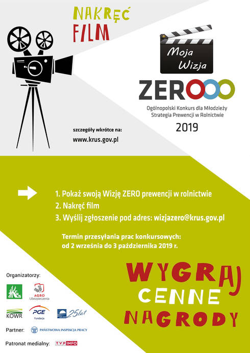 Zadanie konkursowe będzie polegało na wykonaniu krótkiego (2-minutowego) filmu, który będzie nawiązywał do 7 Złotych Zasad Wizji Zero – międzynarodowej kampanii społecznej, która ma na celu minimalizowanie ryzyka wypadku przy pracy w sektorze rolniczym: