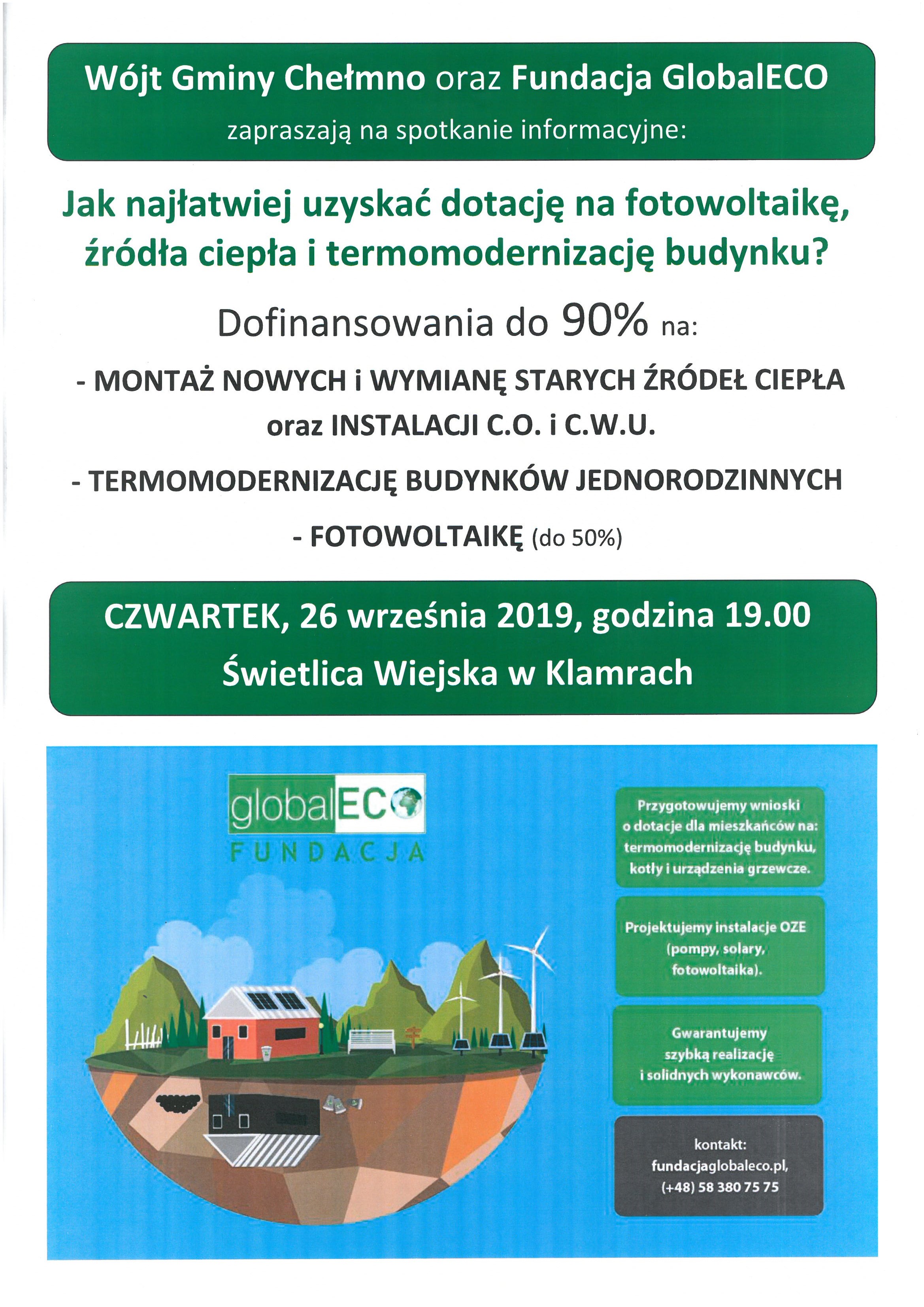 Wójt Gminy Chełmno oraz Fundacja GlobalECO zapraszają na spotkanie informacyjne