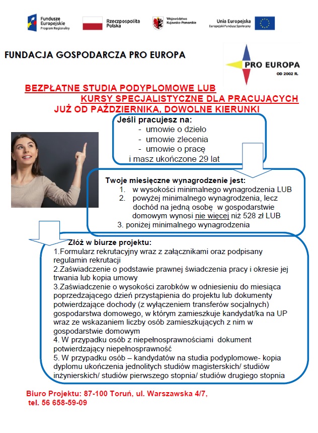 Bezpłatne studia podyplomowe lub kursy specjalistyczne.