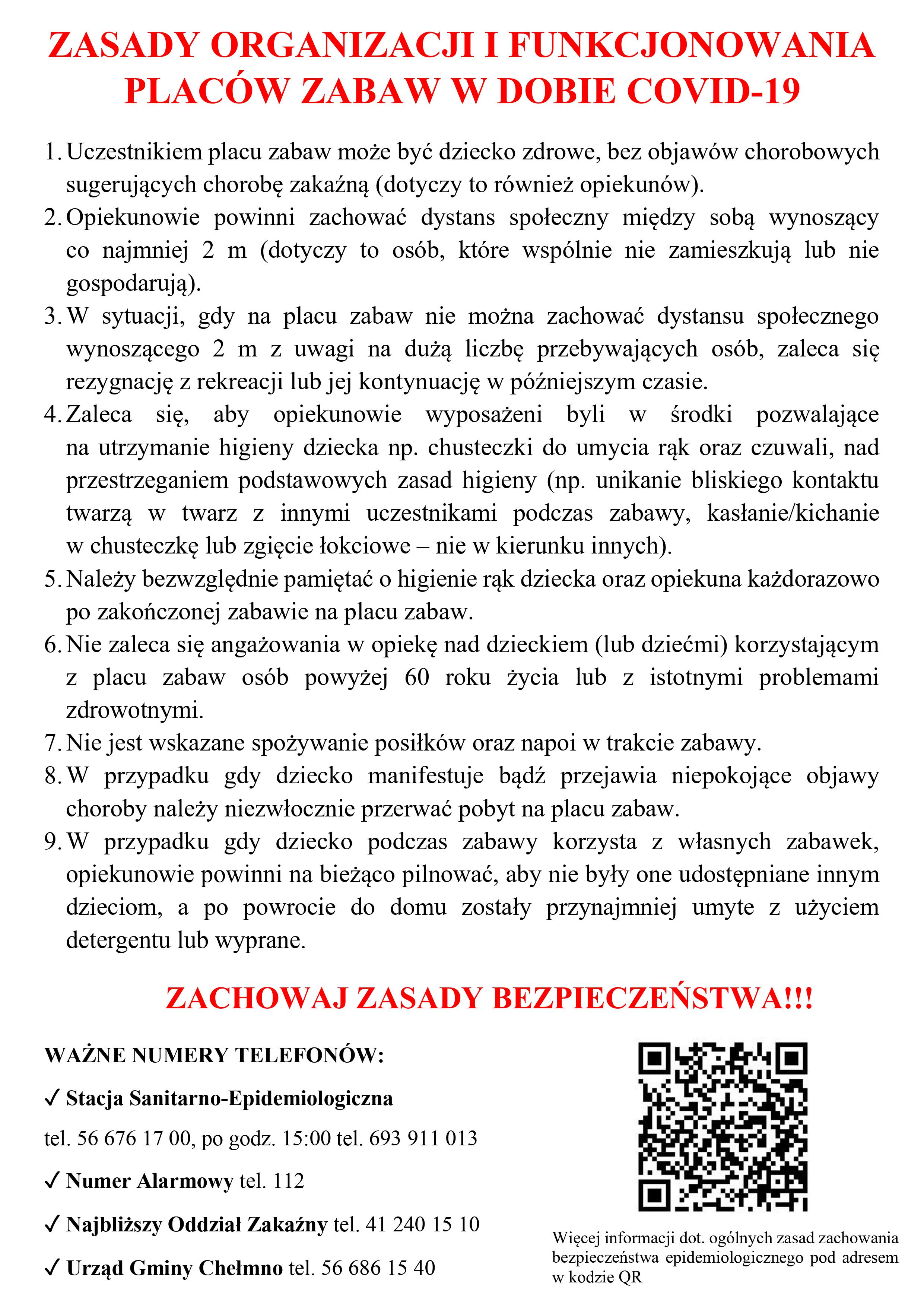 UWAGA! PLACE ZABAW Z NOWYMI ZASADAMI FUNKCJONOWANIA W DOBIE COVID-19!