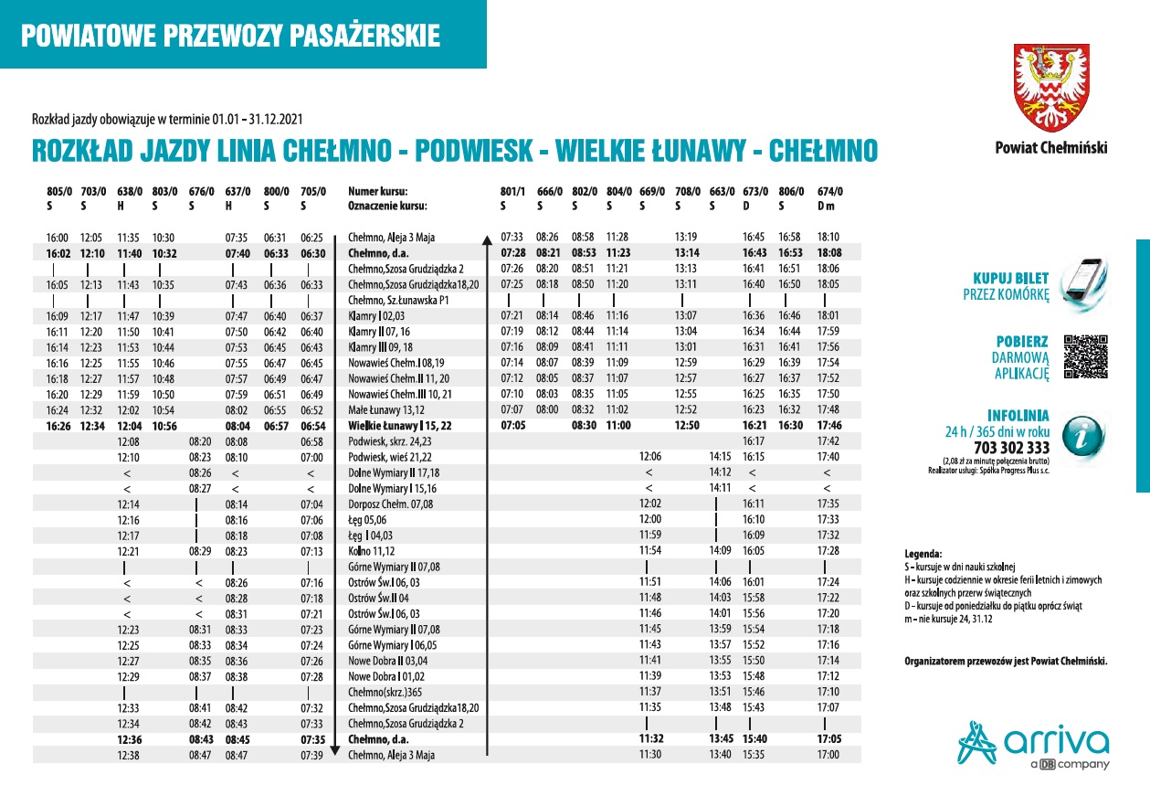 Z początkiem roku uruchomiona została linia autobusowa Chełmno - Podwiesk - Wielkie Łunawy - Chełmno. Poniżej zamieszczamy rozkład jazdy.