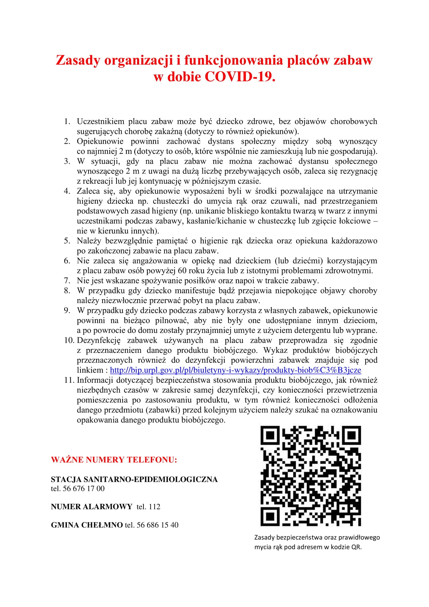 Zasady organizacji i funkcjonowania placów zabaw w dobie COVID-19.