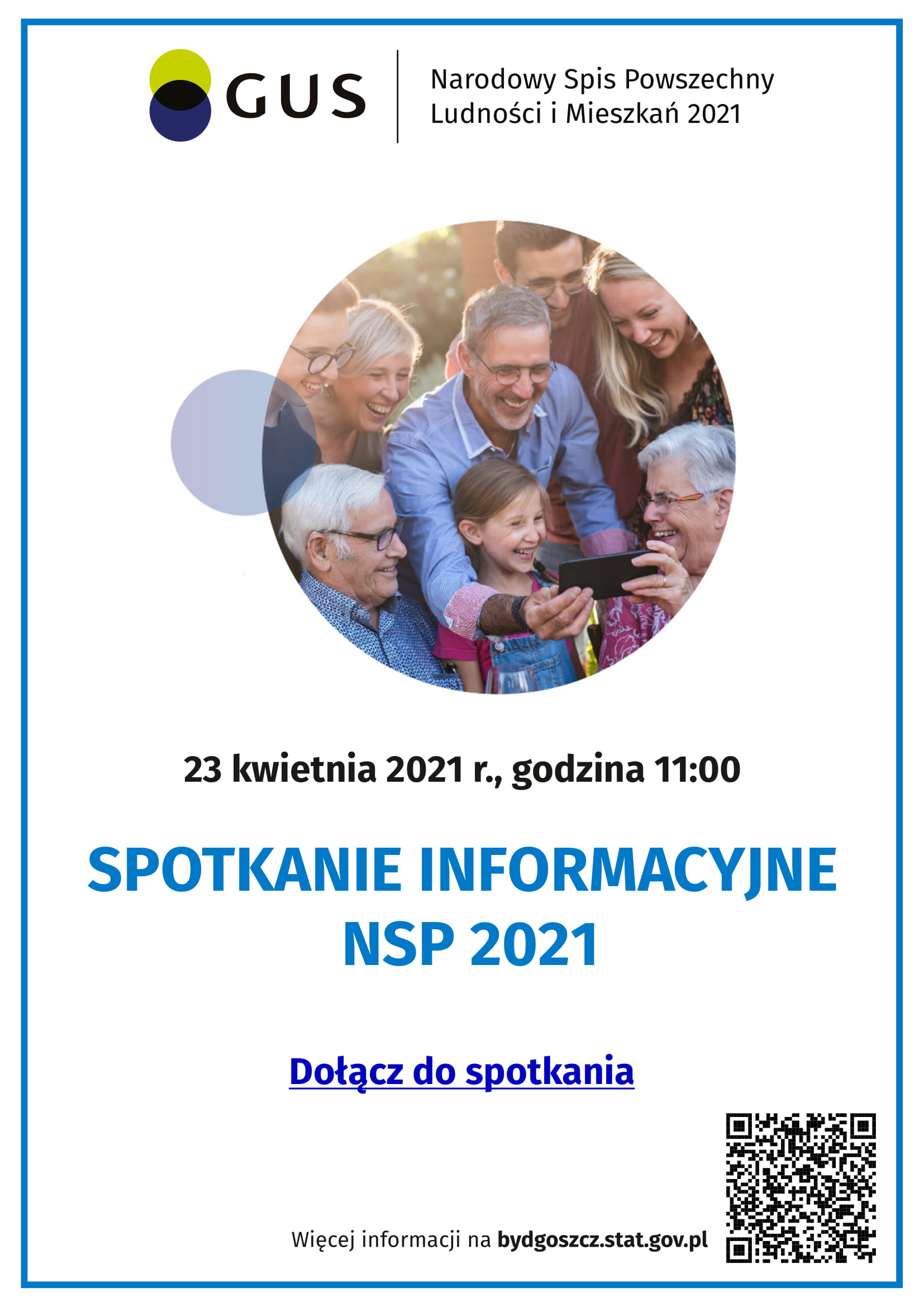 Urząd Statystyczny w Bydgoszczy zaprasza wszystkich zainteresowanych na spotkanie on-line w piątek, 23 kwietnia br. Spotkanie dedykowane jest mieszkańcom gminy, którzy mają wątpliwości czy pytania związane z obowiązkiem udziału w Narodowym Spisie Powszechnym Ludności i Mieszkań 2021.
