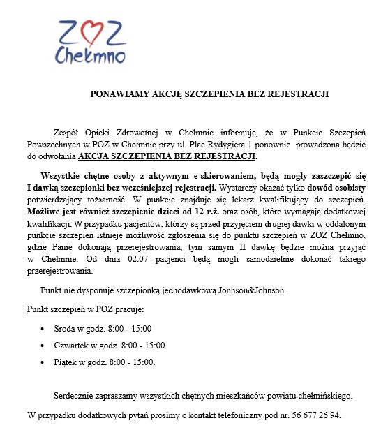 PONAWIAMY AKCJĘ SZCZEPIENIA BEZ REJESTRACJI