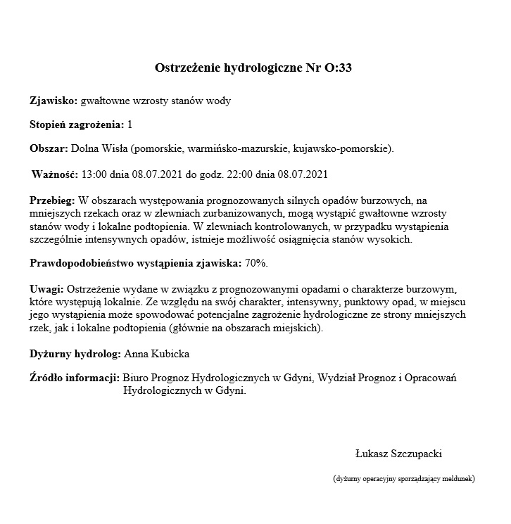 ,,Ostrzeżenie hydrologiczne: gwałtowne wzrosty stanów wody – Dolna Wisła”