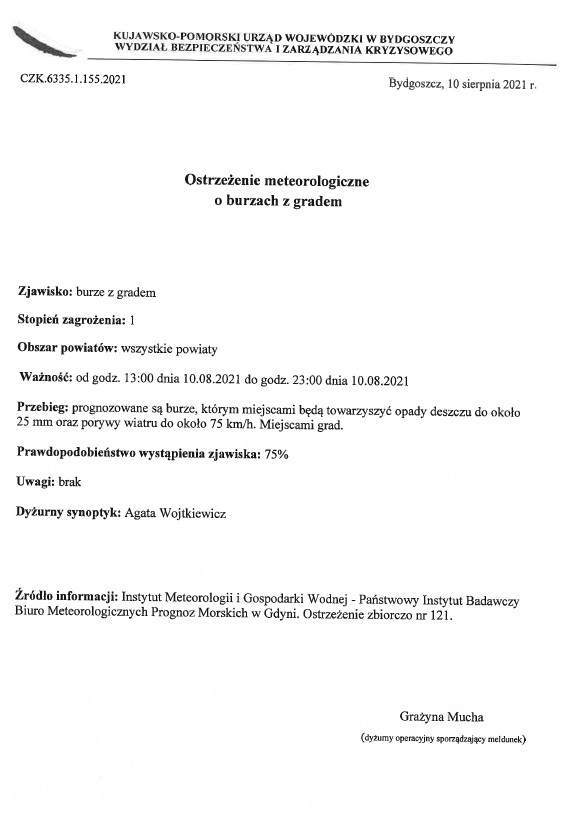 Ostrzeżenie meteorologiczne o burzach z gradem