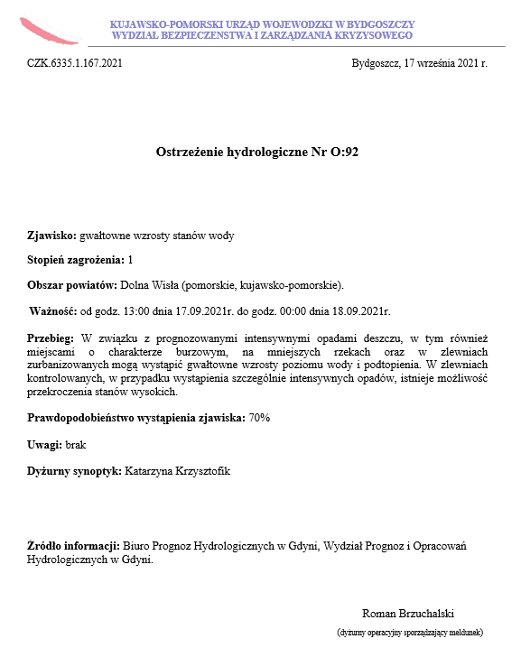 Ostrzeżenie hydrologiczne gwałtowne wzrosty stanów wody.