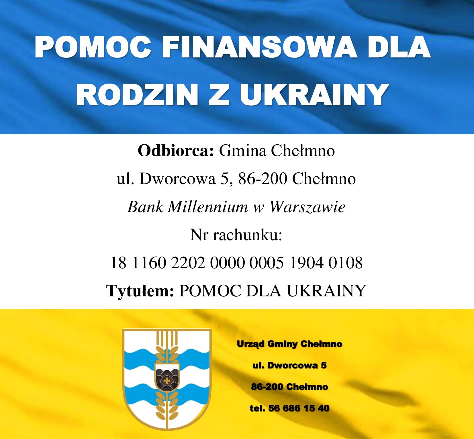 Pomoc finansowa dla rodzin z Ukrainy. Gmina Chełmno uruchomiła rachunek bankowy.