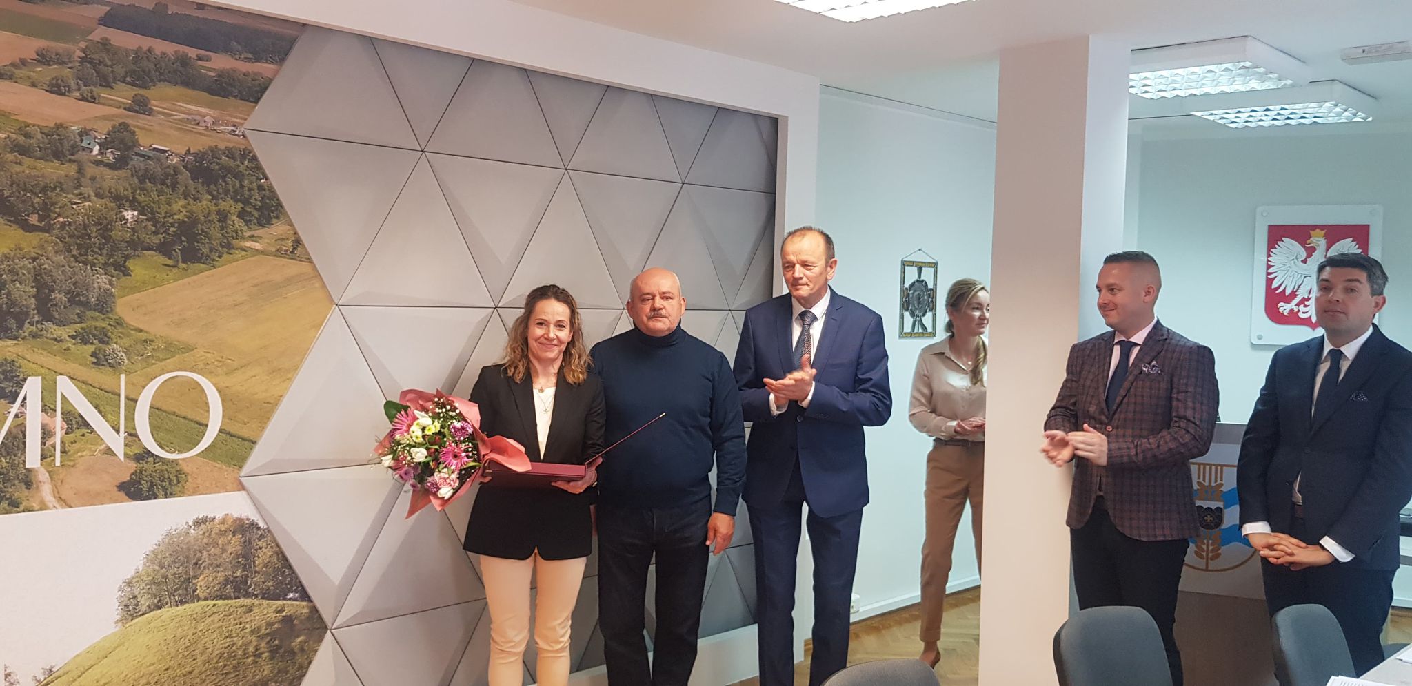Przewodniczący Rady Mieczysław Urbański oraz Wójt Krzysztof Wypij składają podziękowania Pani Dorocie Kowalskiej za jej pracę na rzecz Samorządu Gminy Chełmno.