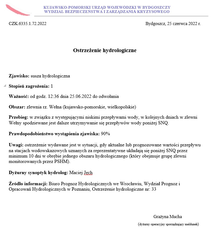 Ostrzeżenie meteorologiczne z dnia 27.06.2022 r. - susza