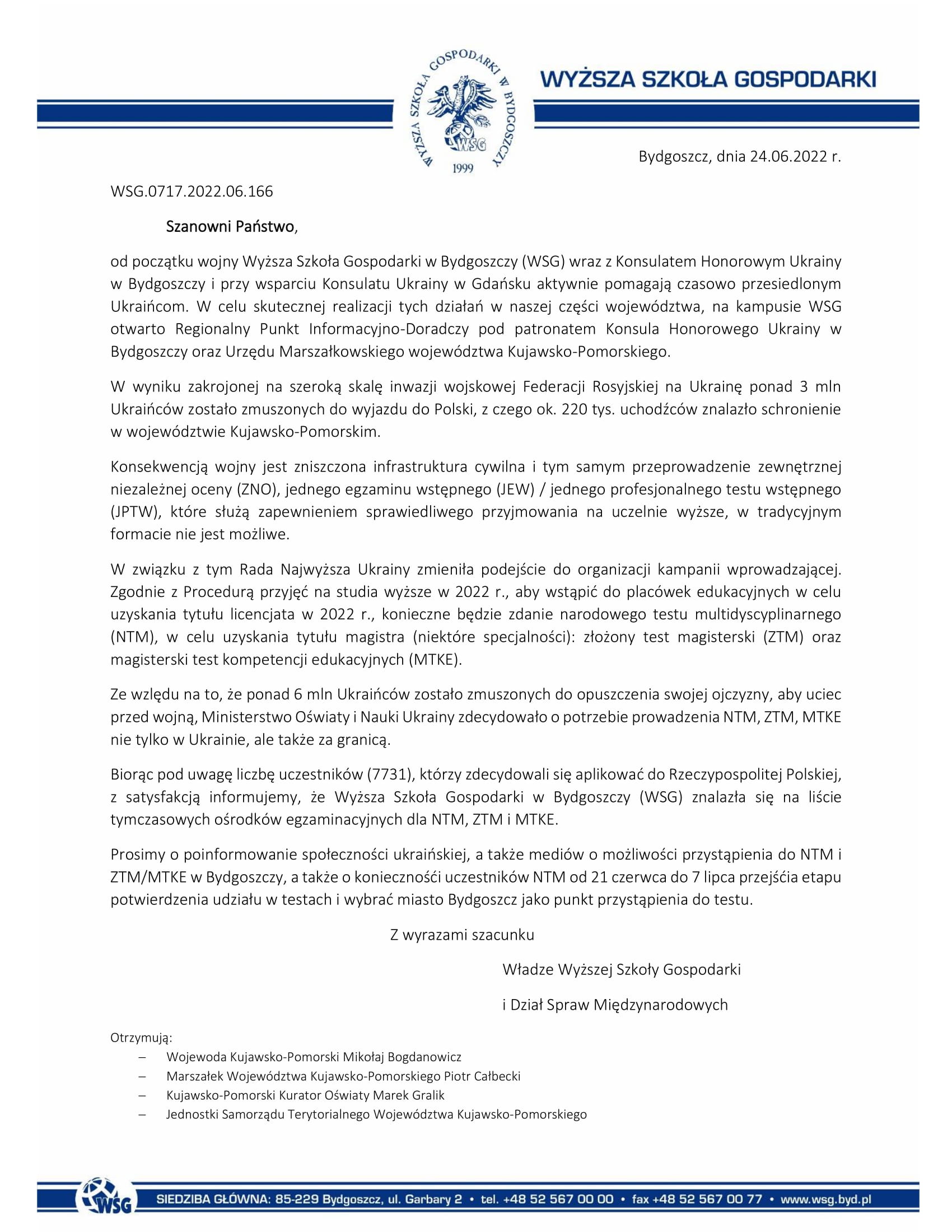 Egzaminy magisterkie dla Obywateli Ukrainy w WSG.