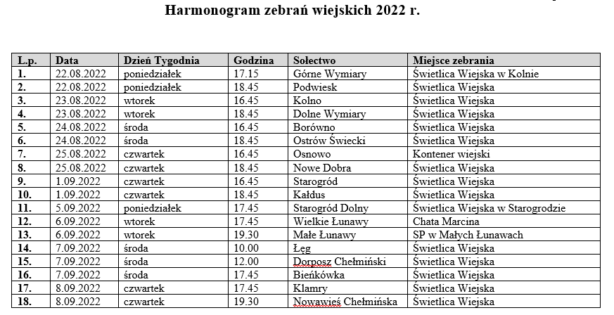 ZEBRANIA WIEJSKIE 2022 – HARMONOGRAM