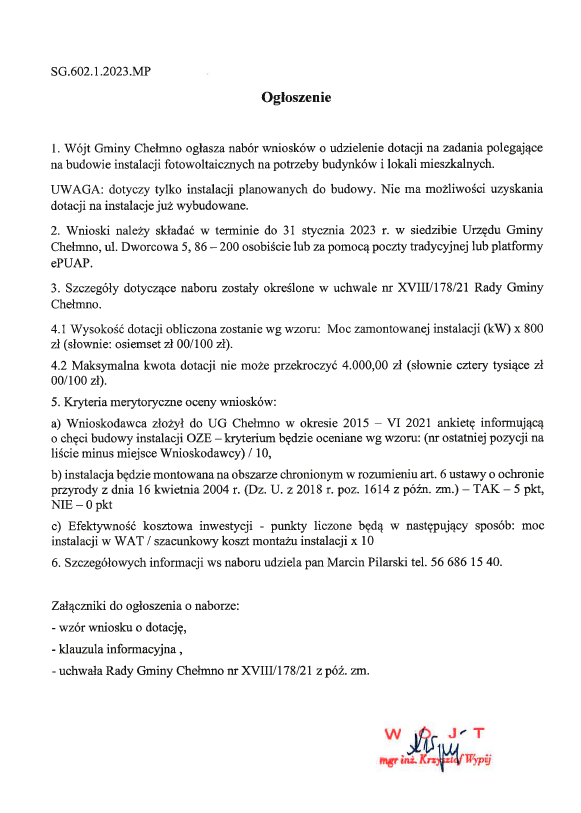 | Podmiot udostępniający: | Krzysztof Wypij-Wójt Gminy Chełmno |