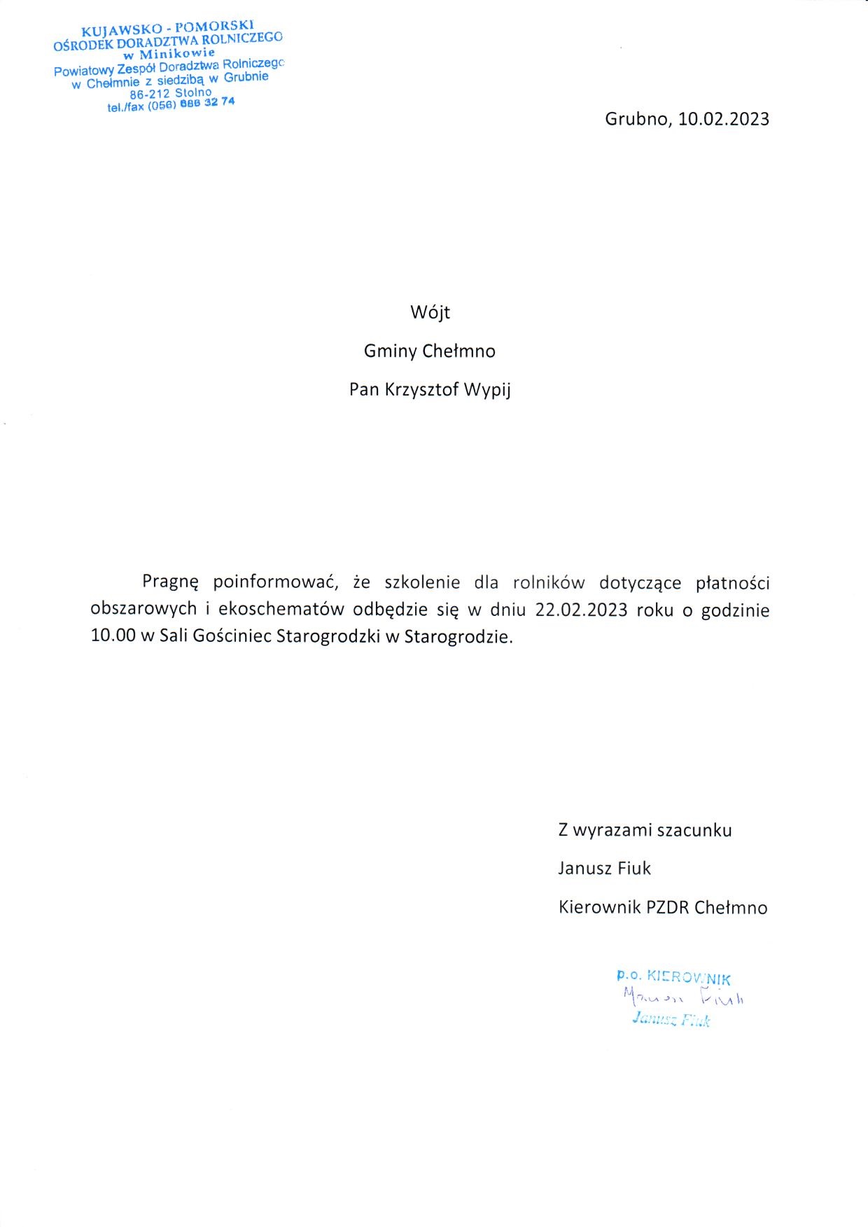 Informacja na temat szkolenia dla rolników dotyczącego płatności obszarowych i ekoschematów.
