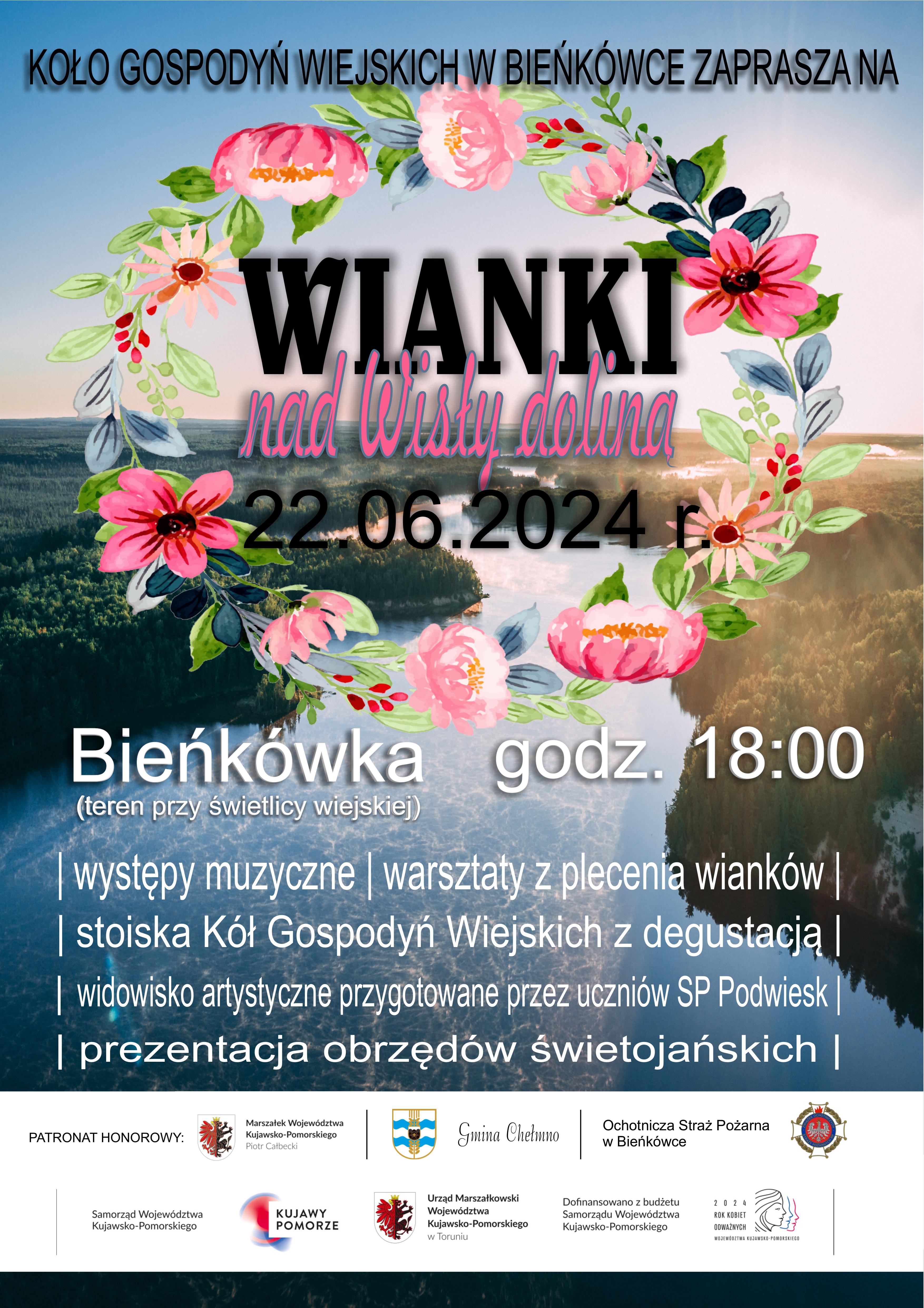 Zapraszamy na "Wianki nad Wisły Doliną" do Bienkówki, 22.06.2024 r., godz. 18