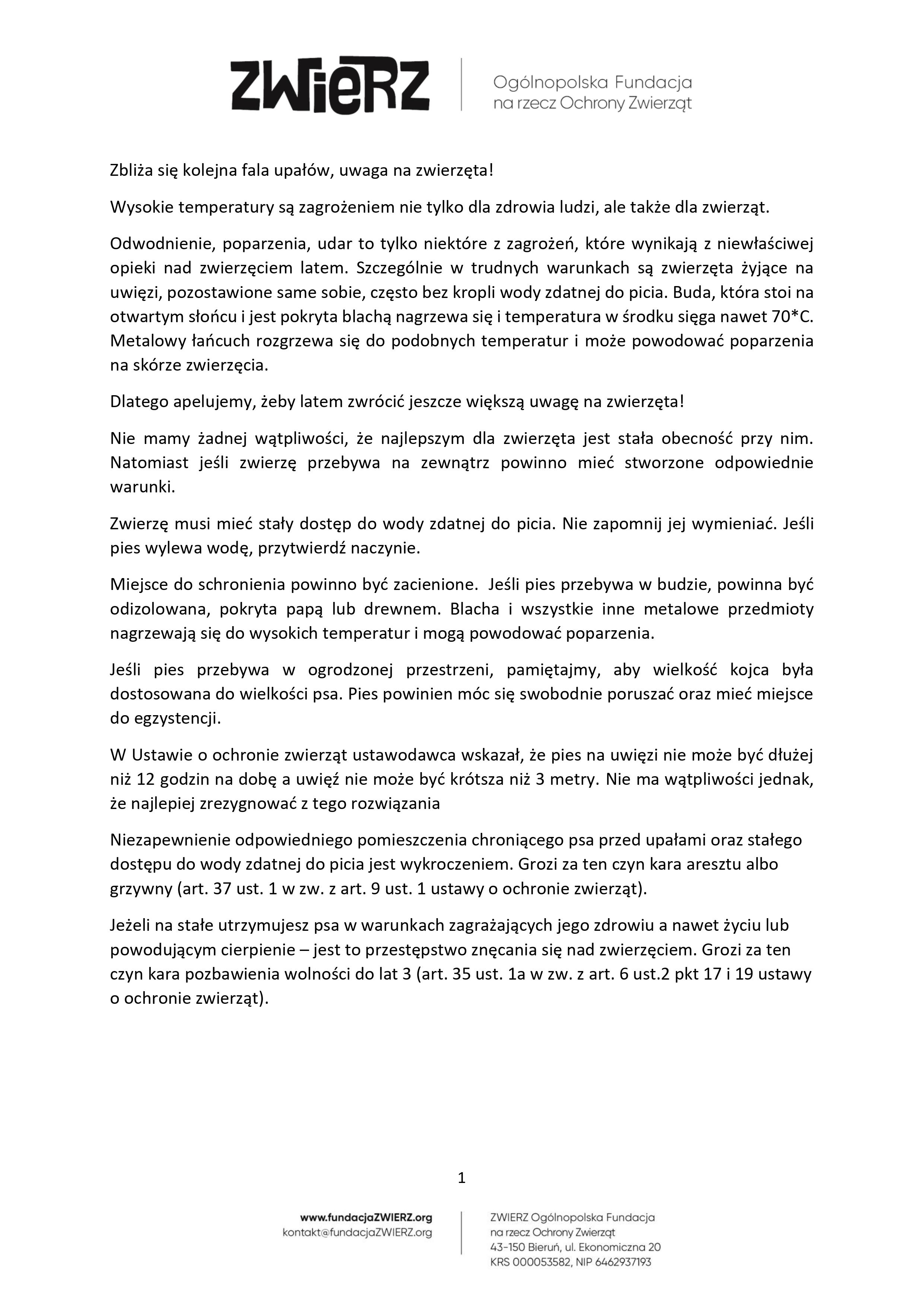 Apel Ogólnopolskiej Fundacji na rzecz Ochrony Zwierząt