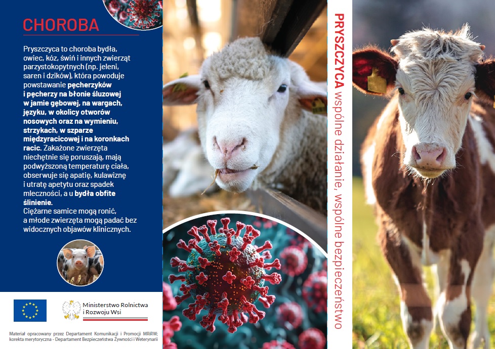 W związku z dynamicznie rozwijającą się sytuacją epidemiologiczną w Europie w zakresie rozprzestrzeniania się zakażeń wirusem pryszczycy (FMD) Kujawsko – Pomorski wojewódzki Lekarz Weterynarii zwraca się z prośbą o zapoznanie się z ulotką dotyczącą pryszczycy (FMD).