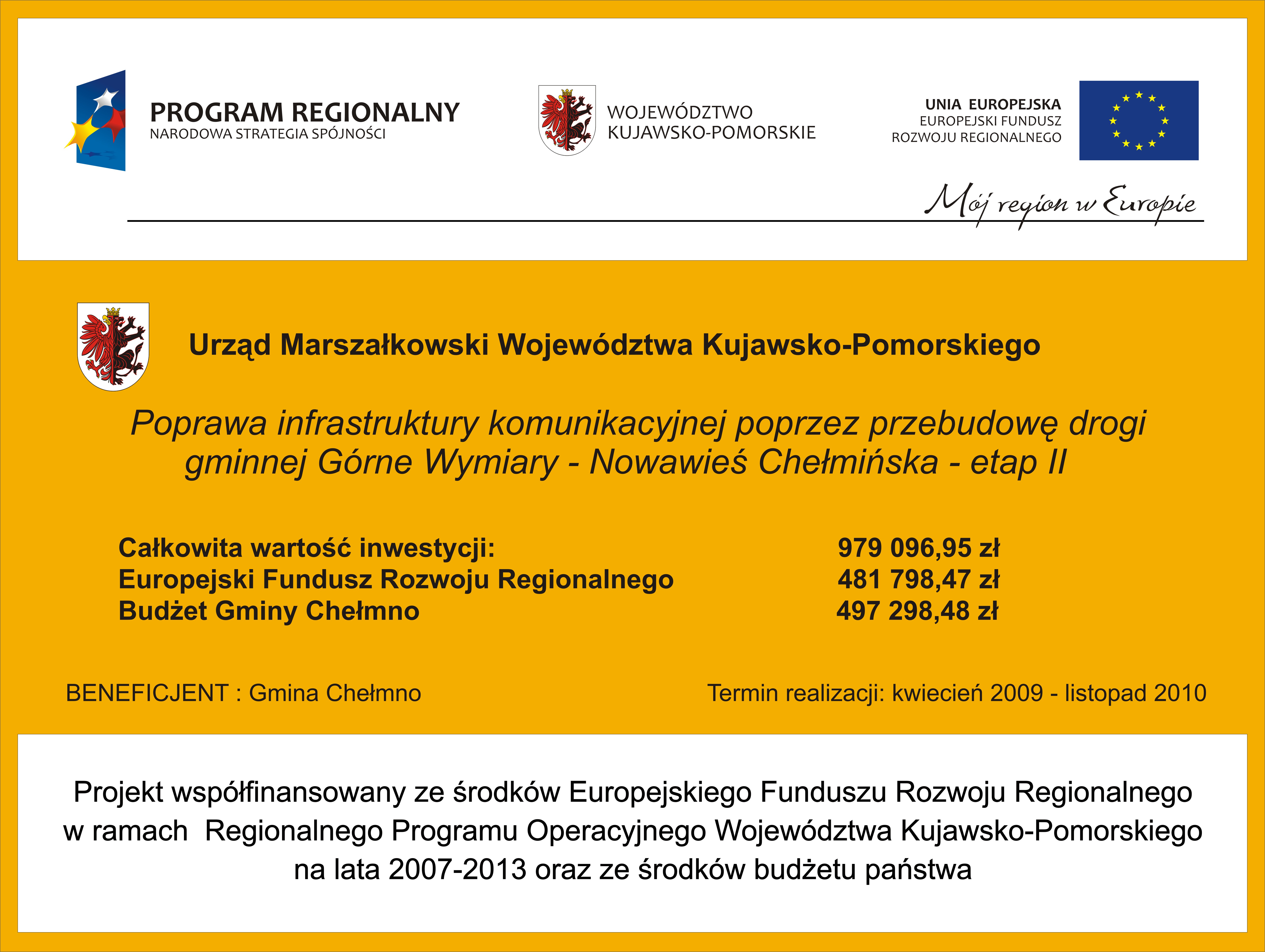 Poprawa infrastruktury komunikacyjnej poprzez przebudowę drogi gminnej Górne Wymiary - Nowawieś Chełmińska - etap II