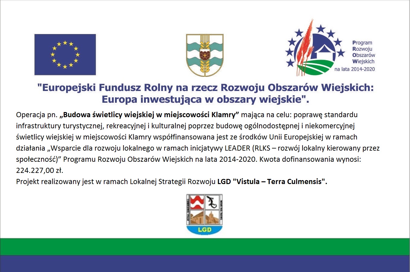 „Budowa świetlicy wiejskiej w miejscowości Klamry”