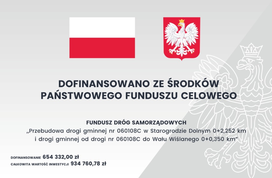 Przebudowa drogi gminnej nr 060108C w Starogrodzie Dolnym 0+2,252 km i drogi gminnej od drogi nr 060108C do Wału Wiślanego 0+0,350 km