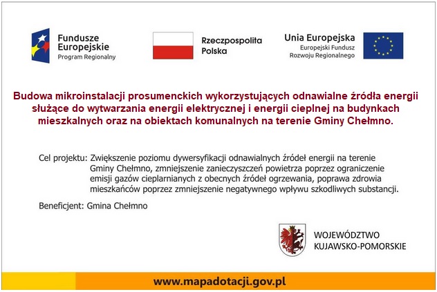 Budowa mikroinstalacji prosumenckich wykorzystujących odnawialne źródła energii służące do wytwarzania energii elektrycznej i energii cieplnej na budynkach mieszkalnych oraz na obiektach komunalnych na terenie Gminy Chełmno
