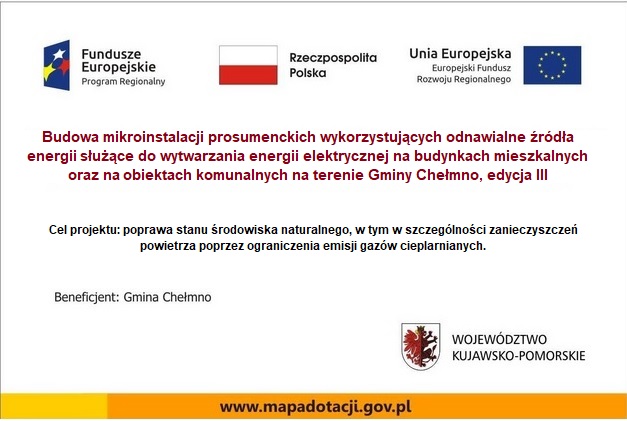 Budowa mikroinstalacji prosumenckich wykorzystujących odnawialne źródła energii służące do wytwarzania energii elektrycznej na budynkach mieszkalnych oraz na obiektach komunalnych na terenie Gminy Chełmno, edycja III