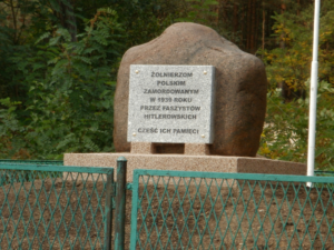 – pomnik w formie głazu z tablicą inskrypcyjną, poświęconą żołnierzom polskim zamordowanym w 1939 r. przez faszystów hitlerowskich.