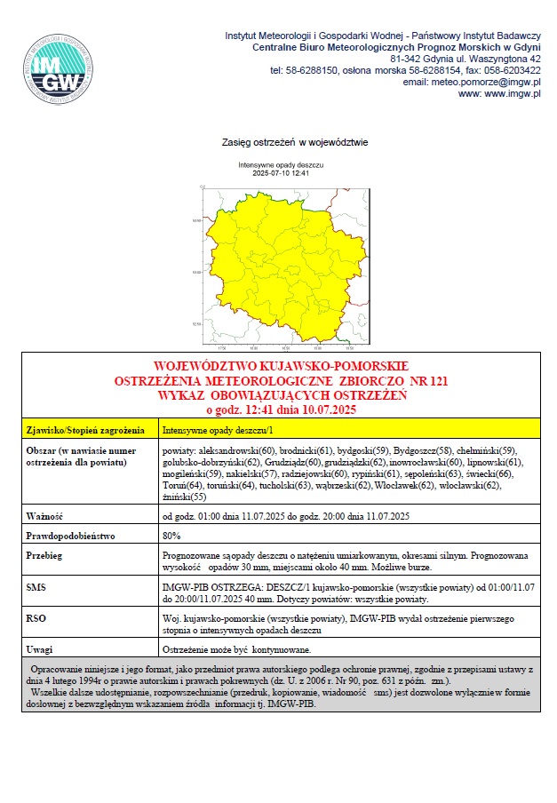 Ostrzeżenie meteorologiczne - intensywne opady deszczu