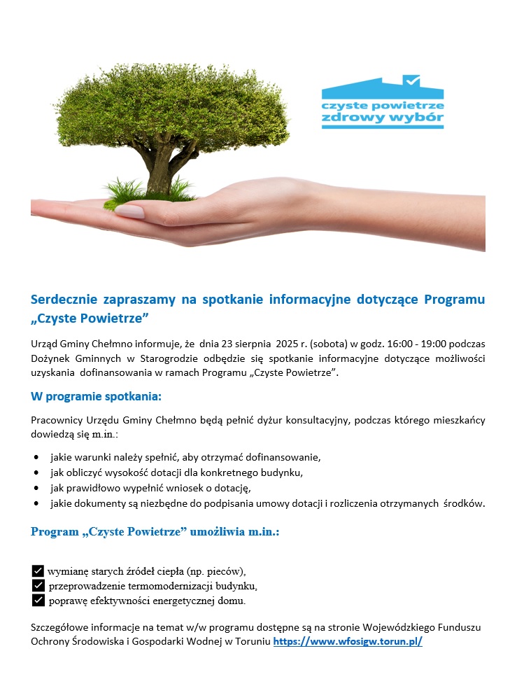 Serdecznie zapraszamy na spotkanie informacyjne dotyczące Programu „Czyste Powietrze”